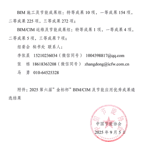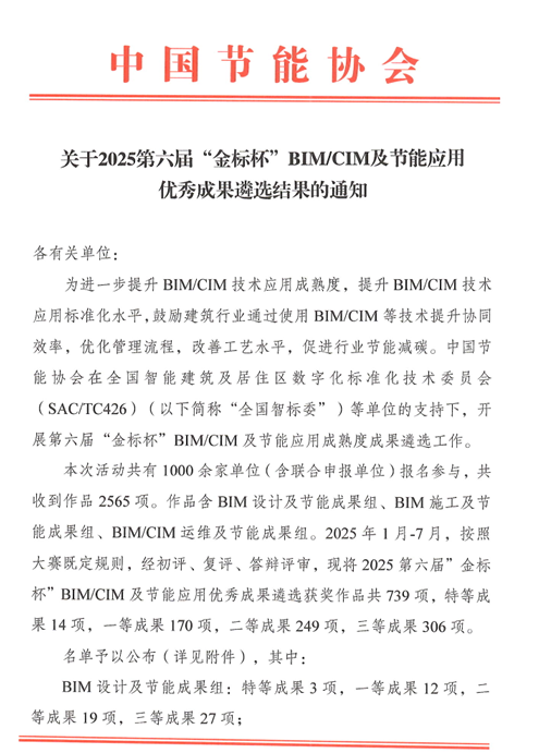 近日,由中国节能协会主办的2025年第六届“金标杯”BIM/CIM及节能应用优秀成果遴选结果正式揭晓。经过激烈角逐,我校与中创汇科(武汉)科技有限公司联合申报的“智慧校园CIM平台项目”在全国众多优秀参评项目中脱颖而出,荣获BIM/CIM运维及节能成果组三等成果!